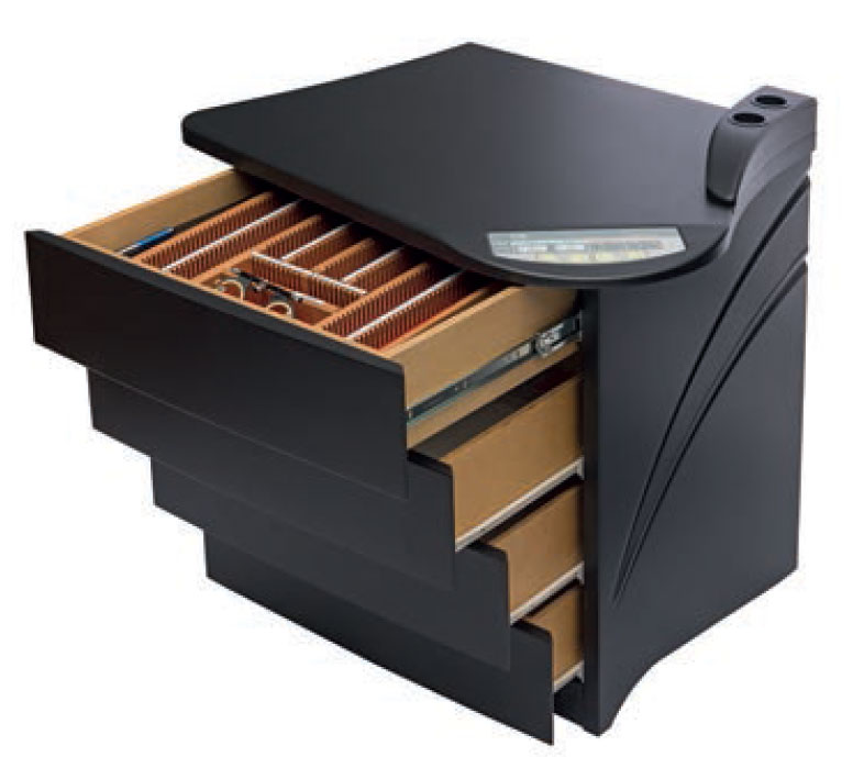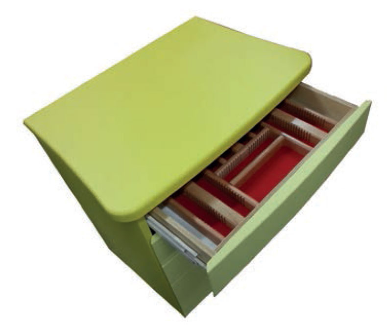 CSO offers a wide range of chests of drawers, to meet every kind of need. They can be combined with refraction units and are available in several colours. They can complete furnishings by adding desktops, with several dimensions and sizes to choose from. The chest of drawers can contain the lens tray and other accessories useful to the user.