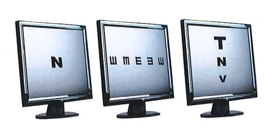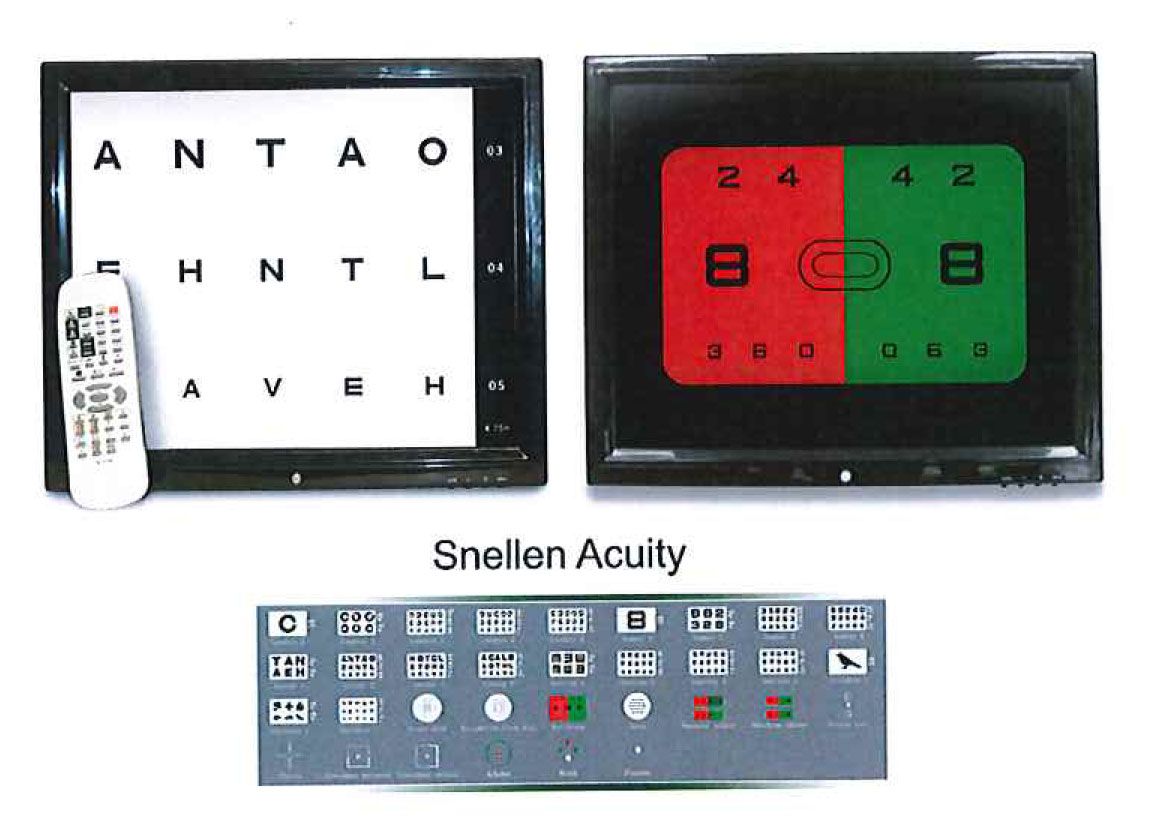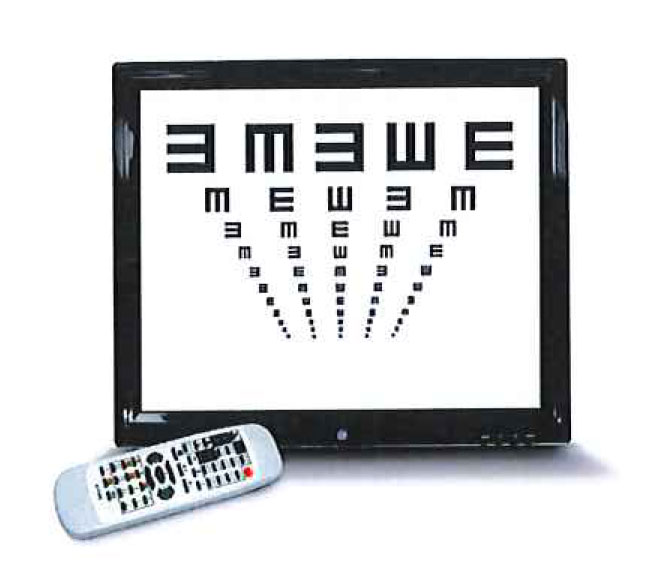 The chart size automatically calibrates to the working distance, eliminating the need for mirror systems that compromise image quality, as well as the need for a technician. The working distance may be between 6' and 21' (2m and 6.5m).